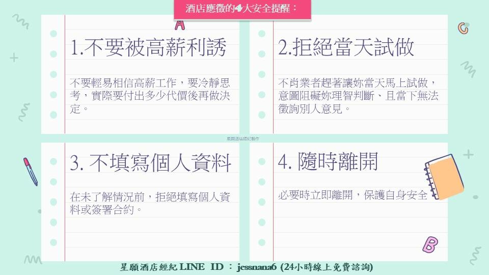 先透過線上或LINE作為初步的了解,且多找幾家酒店經紀來諮詢比較,貨比三家不吃虧。