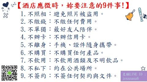 9.別馬上答應試做,要把各項細節問清楚以免日後爭議(如坐檯模式、上班時段、店內規定等)。